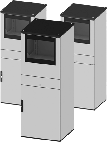 - Puerta parcial superior con ventana transparente para monitor de 19″ de cristal templado de seguridad serigrafiado de sp. 4 mm.